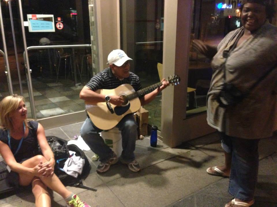 I would envision myself on stage in front of throngs of people with a guitar strapped on, belting out Oingo Boingo, Duran Duran and Spandau Ballet covers. Yes, oh yes – these were glorious dreams. Of course, with age and maturity and the realization that one must actually make money in order to survive, the dream of rock stardom was set aside for more practical pursuits – that and the fact that I possessed little musical skill or training. Anyway, for me the dream of being a rock star was not fueled by desires of celebrity, fame, or even riches. It was fueled by the inexplicable joy of musical performance, not necessarily for others, not for acceptance or praise, but just in general. And so I am blessed to feel this joy even if I’m not on stage at the county fair singing “Hungry Like The Wolf”. I am blessed whenever I get to play in front of the congregation on Sunday mornings, when I play on a street in Denver, or when I get to hang out with friends at the karaoke bar. At times like these, I feel like a rock star.